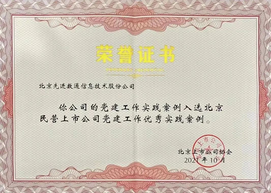 近期,北京上市公司协会授予北京创富国际CFD 创富信息技术股份公司荣誉证书,创富国际CFD 创富党建工作实践入选北京民营上市公司党建工作优秀实践案例,相关党建活动已收录在《北京民营上市公司党建工作优秀实践案例汇编》。
