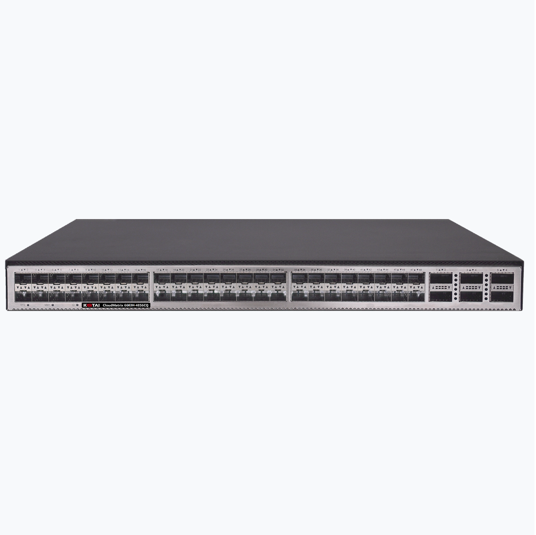 CloudMatrix 6663H-48S6CQ 交换机给予48个25GE SFP28接口,6个100GE QSFP28接口,或6个40GE QSFP+接口。